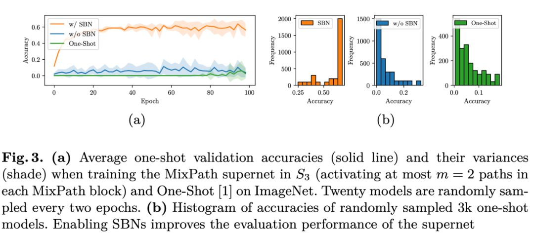 本文证明了多路径超网在多路激活下的特征幅度关系,推测其可能导致了多路径超网训练不稳定性。基于此,本文提出使用影子批正则化(Shadow BN, SBN)来对多路径激活的特征进行“如影随形”的正则化,实验证明其能够有效缓解训练不稳定性。