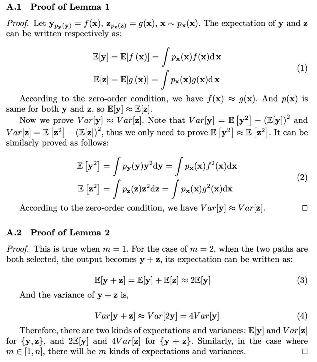 在双路径激活情形下,其输出特征图为 y+z,均值为 E(y+z)=E(y)+E(z)≈2E(y),方差 Var(y+z)≈Var(2y)=4Var(y),证明如下。