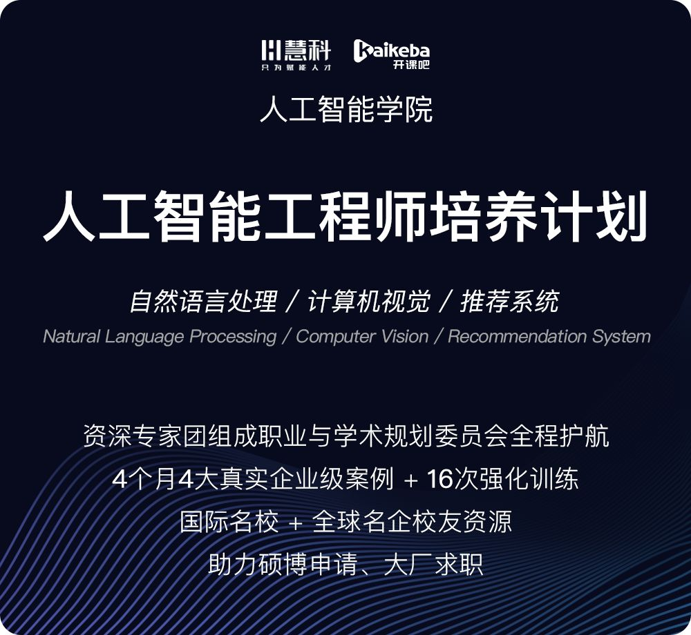 面向希望自己能够在4-6个月内找到一份人工智能、机器学习、深度学习、数据科学家、算法工程师等算法研究岗位,或者希望申请美国、欧洲相关院校AI方向的学位的同学。
