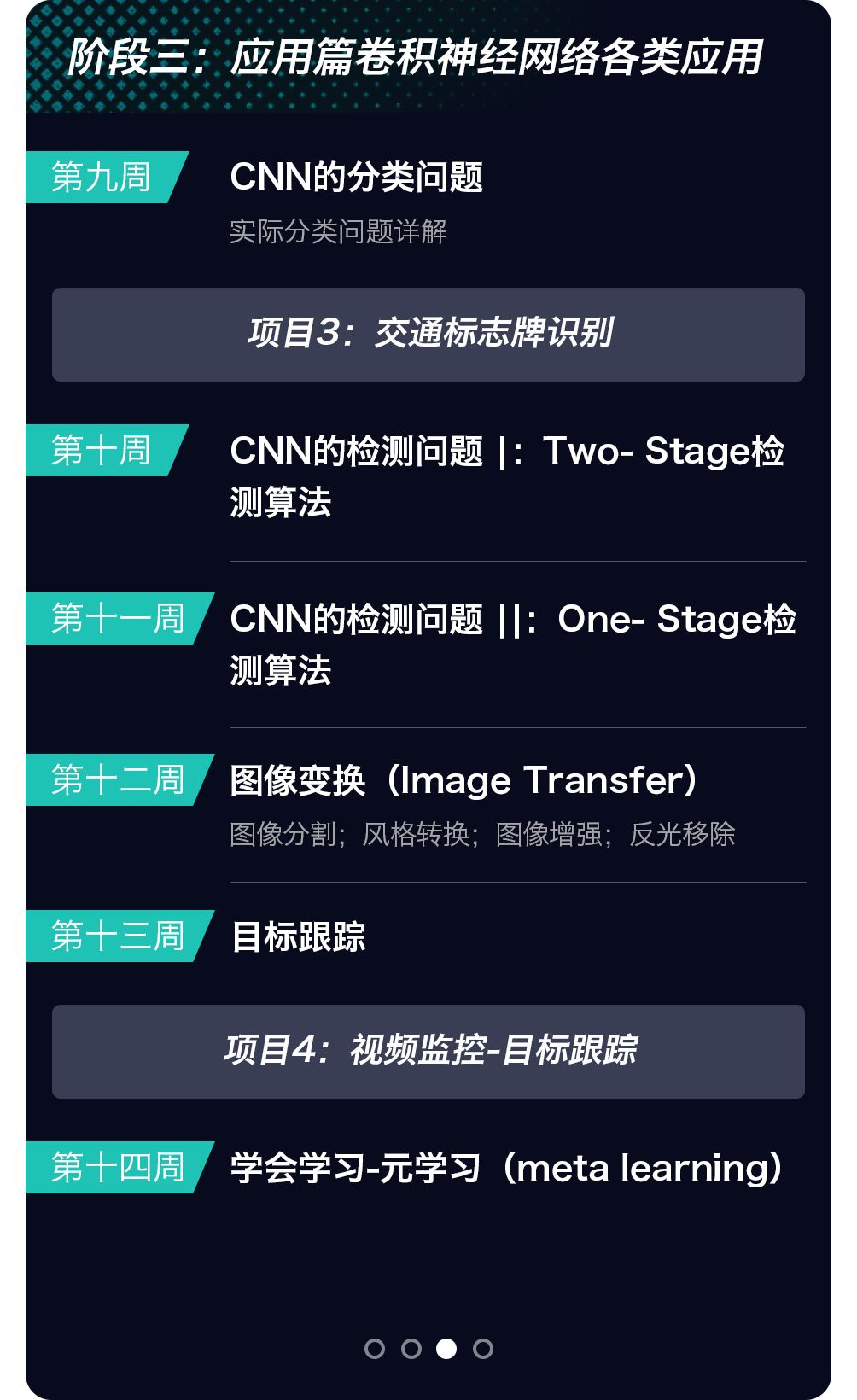 计算机视觉(Computer Vison,CV)主要面向希望从事图像智能处理与识别、视频检测、图像自动生成、无人驾驶、人脸识别与检测方向的学员。本课程内容主要涉及计算机视觉的深度学习方法,包括计算机图形学、经典计算机视觉中的重点方法,同时也覆盖了基于对抗生成网络(GAN)的图像生成方法。