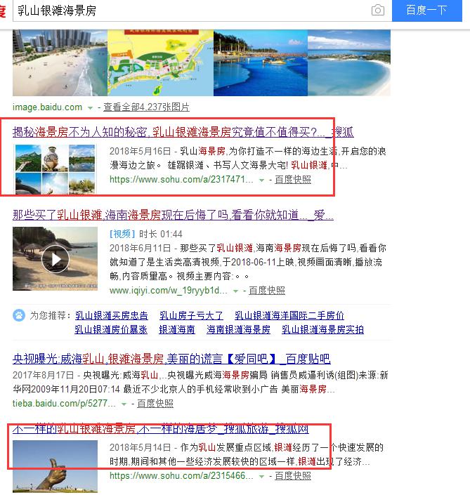 在百度首页展示中,都是在歌颂乳山银滩海景房,其中三条都是关于金鼎地产的海景房