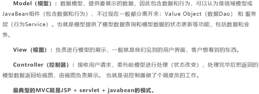 模型(dao、service)、视图(jsp)、控制器(servlet)