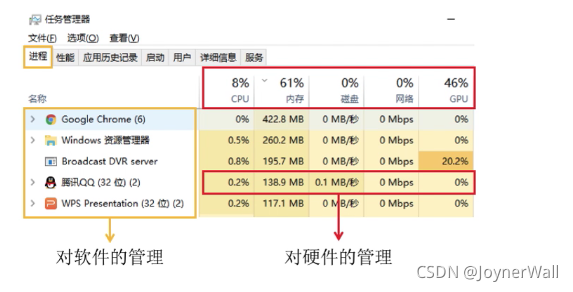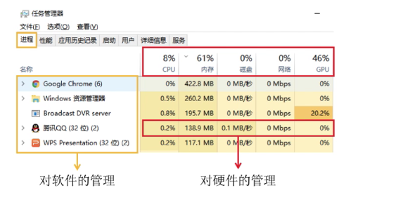 除了QQ以外,后台可能还会同时运行其他的程序,例如微信,网易云音乐、浏览器等等,这一系列的进程都需要等待处理机(CPU)对其分配资源进行处理,这就体现了操作系统的处理机管理功能