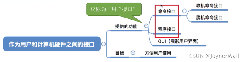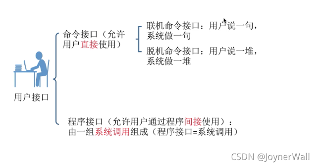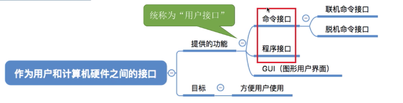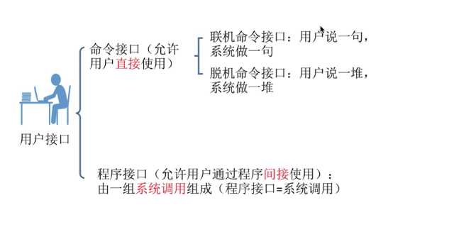 程序接口:如 C:\Windows\System32\user32.dll 程序员在程序中调用 user32.dll (该调用过程即为系统调用) 即可实现创建窗口等功能。只能通过用户程序间接使用,用户没办法直接使用。