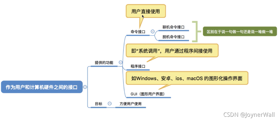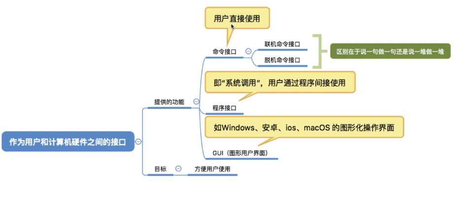 - 操作系统作为用户与计算机硬件之间的接口,要为其上层的一个用户、应用程序提供简单易用的服务,需要实现什么功能?