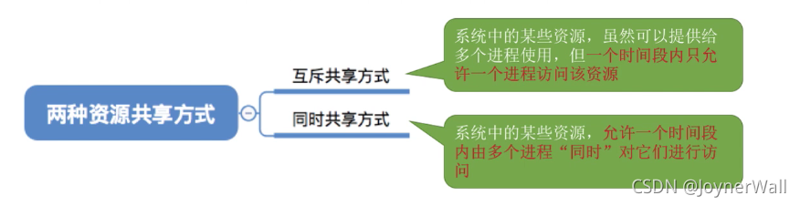 共享即资源共享,是指系统中的资源可供内存中多个并发执行的进程共同使用。