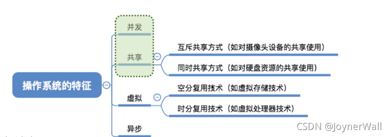 - 没有并发和共享,就谈不上虚拟和异步,因此并发和共享是操作系统的两个最基本的特征。