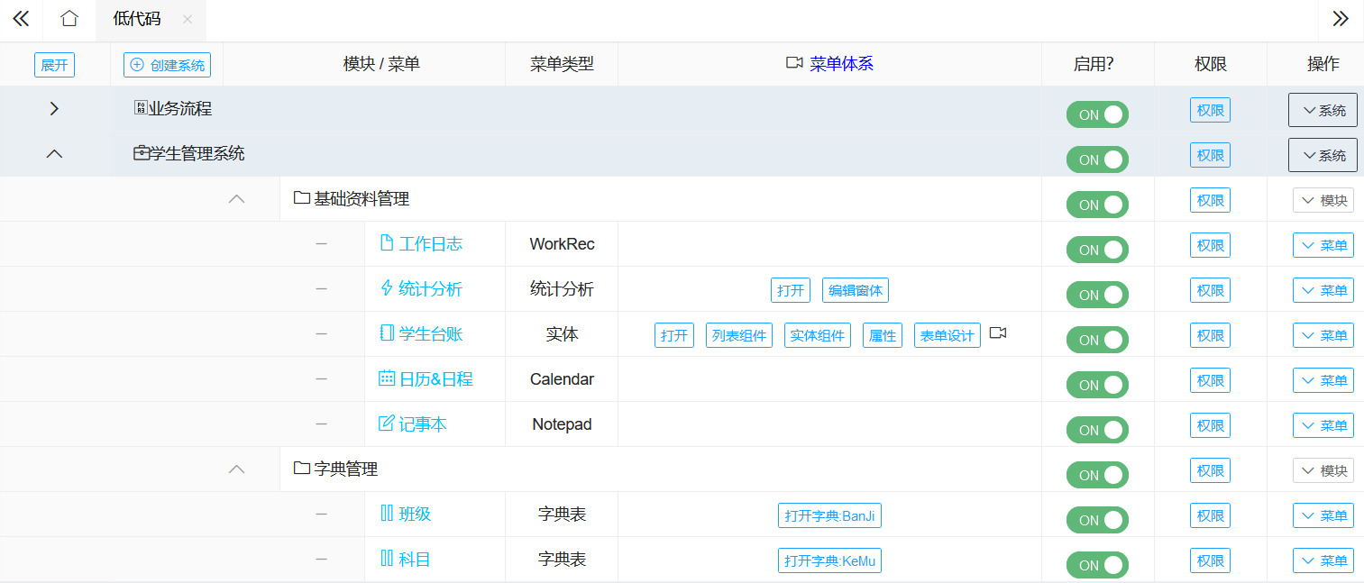 - 内置流程、实体、报表、以及OA办公菜单功能,轻松div出来自己的应用系统。