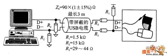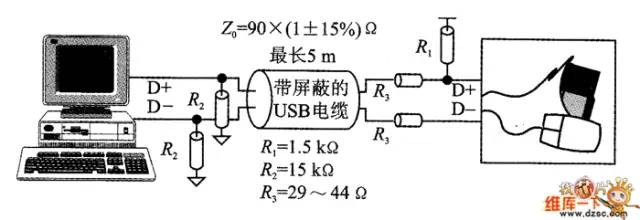 图1 全速设备与PC主机之间电气特性的连接图