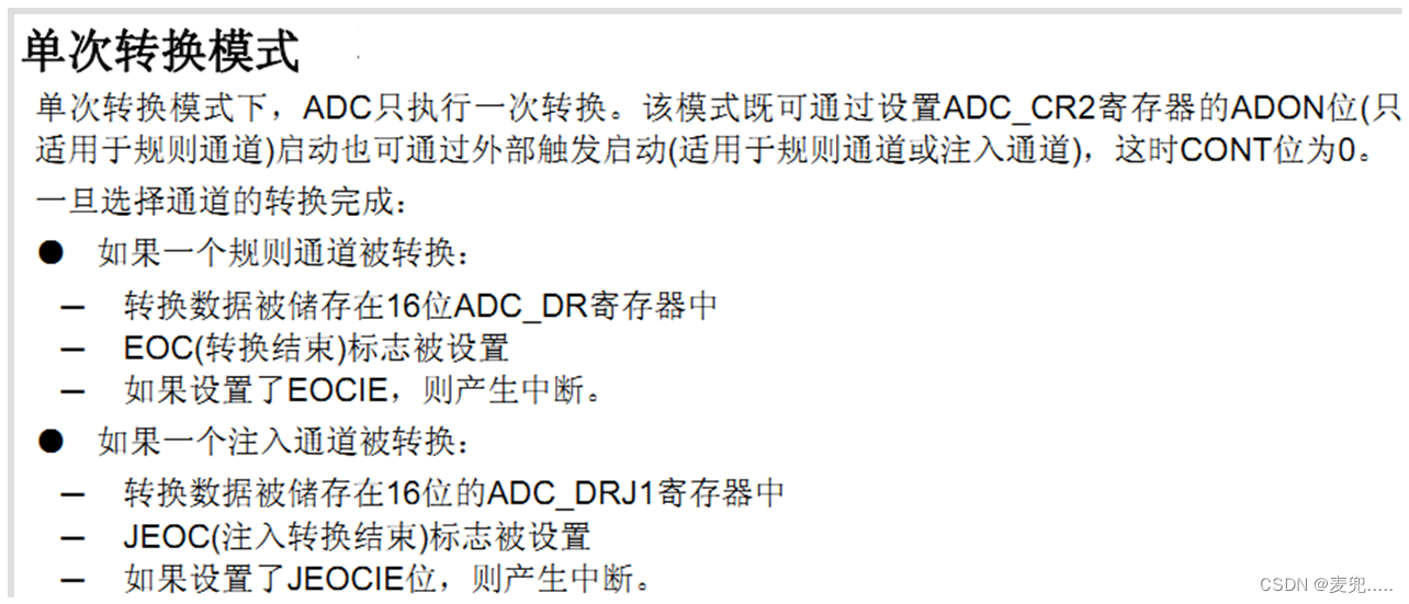 ADC_InitStructure.ADC_ContinuousConvMode = DISABLE; //AD 单次转换模式
