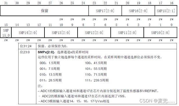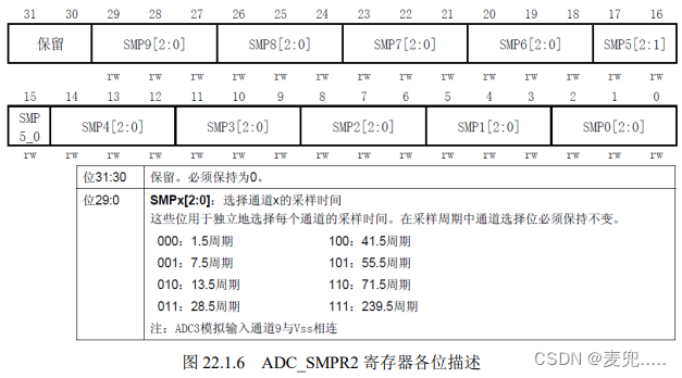 ADC_SMPR2 的各位描述如下图所示