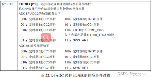 EXTSEL[2:0]用于选择启动规则转换组转换的外部事件,