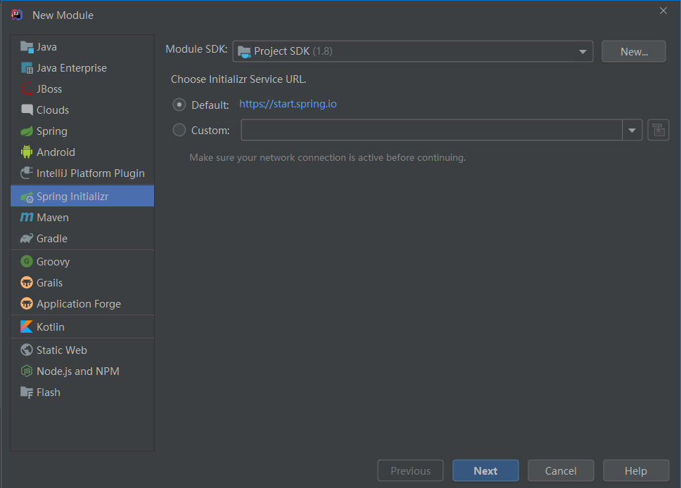 1、在主工程上:右键-->new-->module-->Spring Initializr-->next