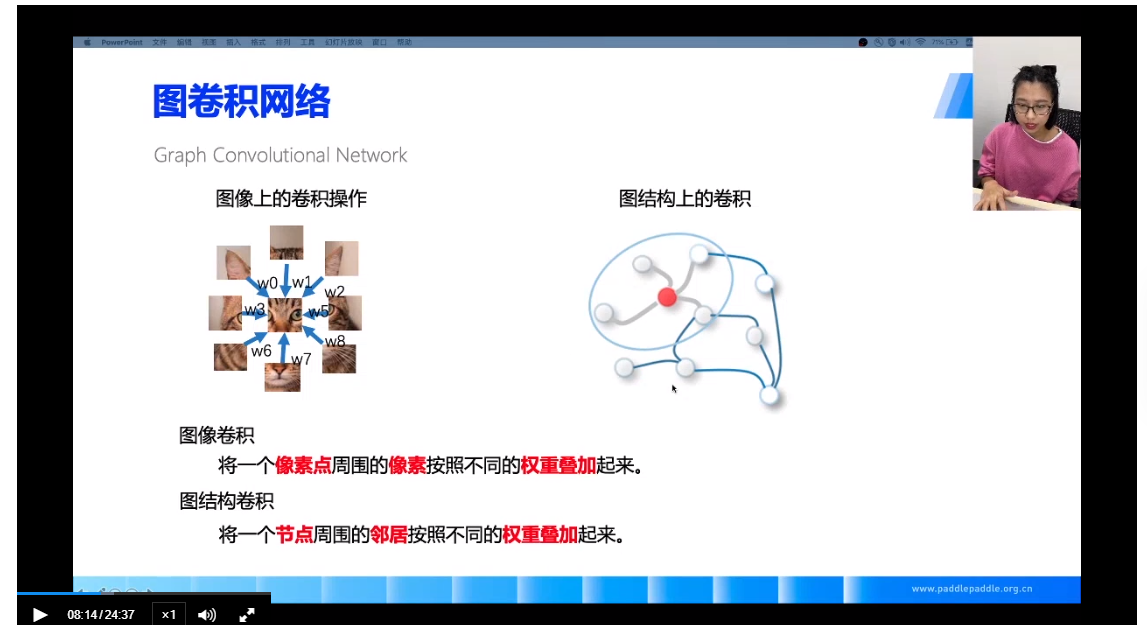本次百度Ai Studio的图神经网络7日打卡营从图运算基础的图游走模型开始到成型的图神经网络算法GCN、GAT等进行了详细浅显的介绍和教学,令人印象深刻的是课程中通过传统图像处理的卷积原理来讲解图神经网络中卷积的原理以及将NLP模型与图神经网络进行融合的过程,很大程度上加深了我对于图神经网络的理解。