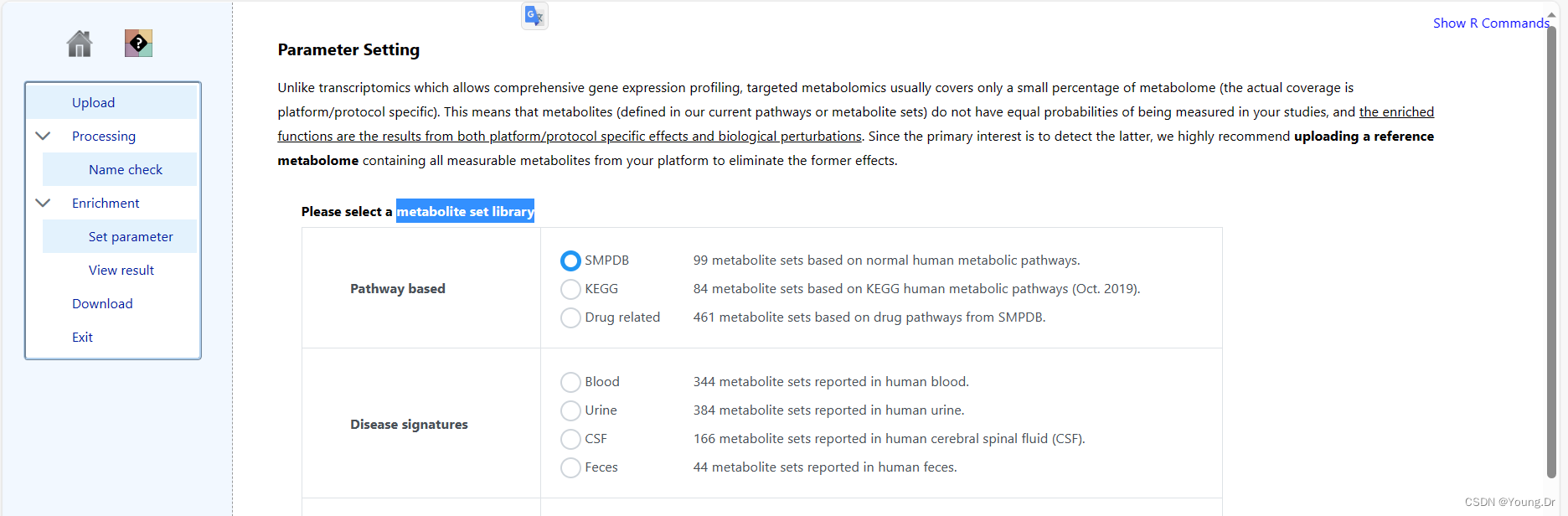 mSet<-SetCurrentMsetLib(mSet, "smpdb_pathway", 2);