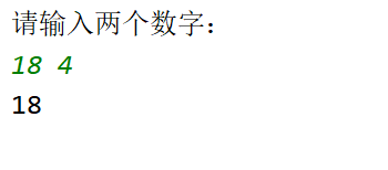 public static void main(String[] args) {System.out.println("请输入两个数字:");Scanner s1 = new Scanner(System.in);int num1 = s1.nextInt();int num2 = s1.nextInt();int max1 = max(num1,num2);System.out.println(max1);s1.close();}//比大小public static int max(int num1,int num2){int result = -1;if(num1 > num2){result = num1;}else if(num1 < num2){result = num2;}else{System.out.println("相等");return 0;}return result;}