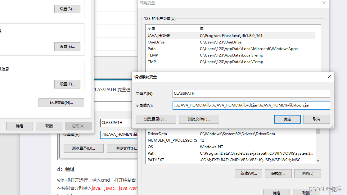 值:.;%JAVA_HOME%\lib;%JAVA_HOME%\lib\dt.jar;%JAVA_HOME%\lib\tools.jar(注意前边有一个点.)