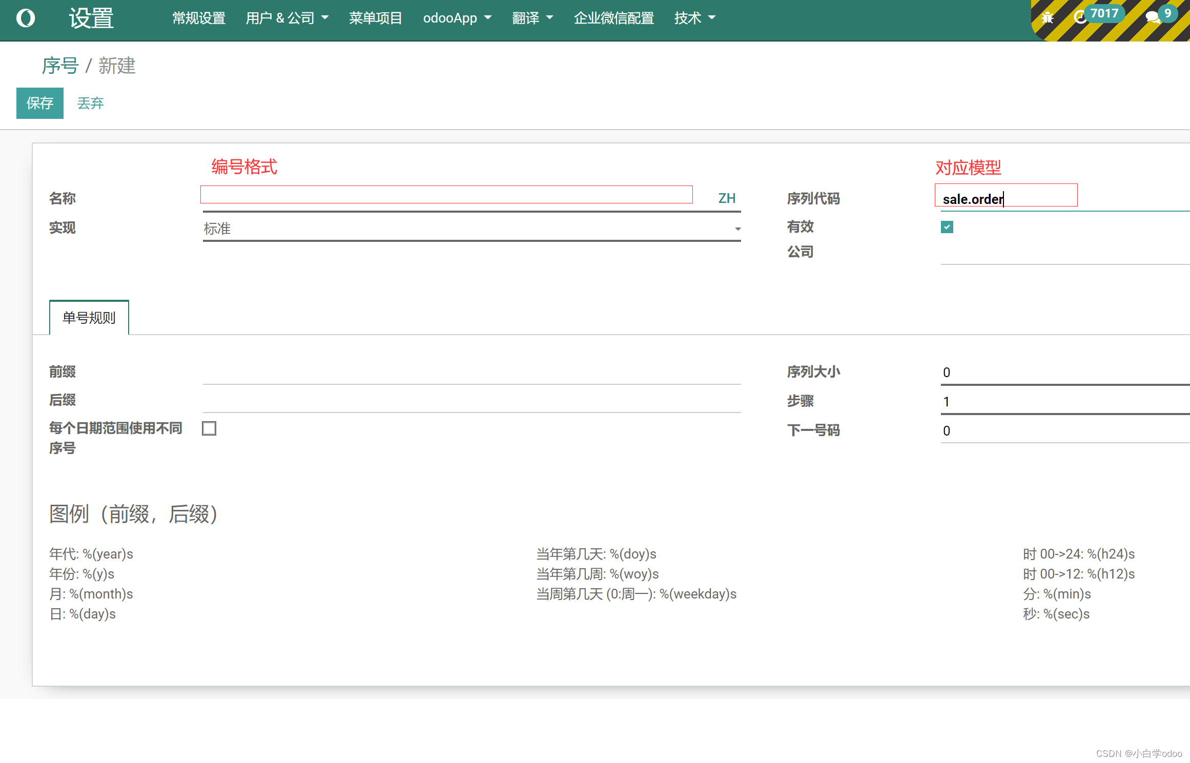 odoo 自定义单据编号