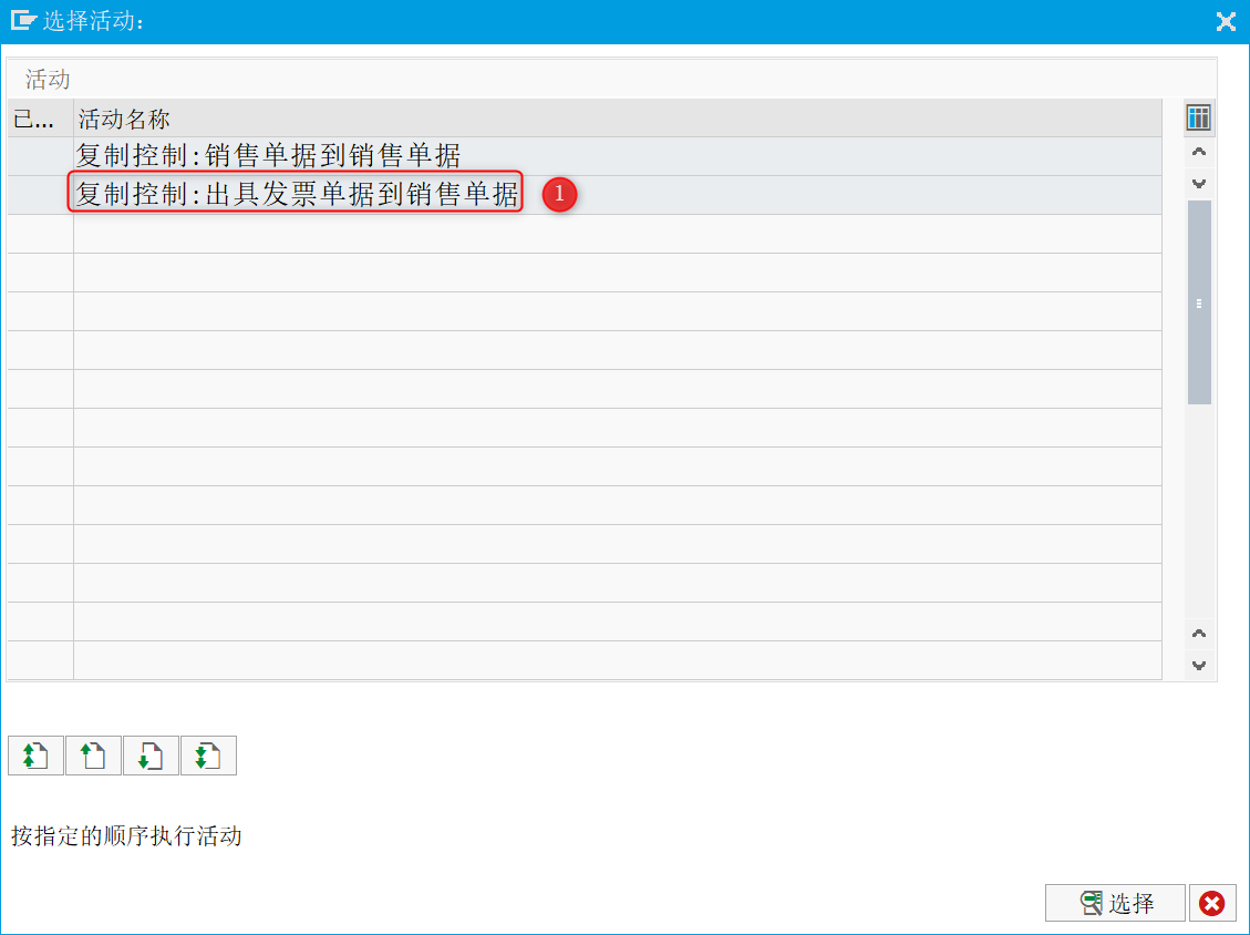 第2步,选择“复制控制:出具发票单据到销售单据”
