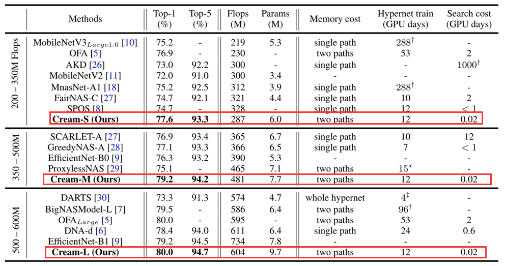 [2]Houwen Peng, Hao Du, Hongyuan Yu, Qi Li, Jing Liao, Jianlong Fu:Cream of the Crop: Distilling Prioritized Paths For One-Shot Neural Architecture Search,NeurIPS 2020;