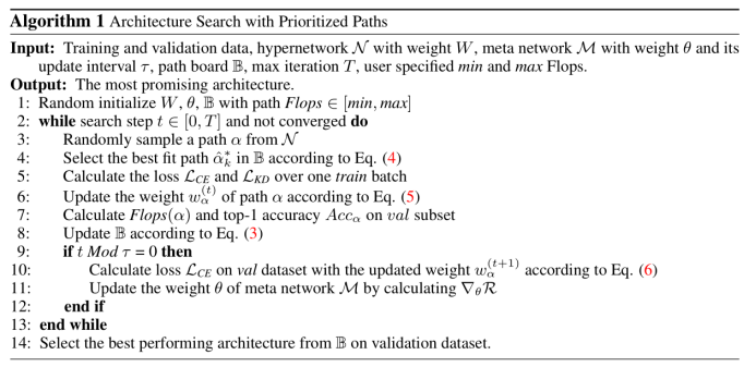 在本文中,我们提出了优先路径来使得知识在结构之间转移,而无需外部的教师模型。关键思想是子网能够在整个训练过程中进行协作学习和相互教授,从而促进了各个结构的收敛。更具体地说,我们创建了一个优先路径面板,招收性能优异的子网作为内部教师来促进其他模型的训练。招收遵循选择性竞争原则,即选择优等、淘汰劣等。除了竞争以外,也存在协作。为了使结构间的信息传递成为可能,我们将知识从优先路径提取到子网。我们的方法不是从固定的模型中学习,而是允许每一子网根据表示的补充去选择它的最优匹配的优先路径作为教师。特别地,引入元网络来模仿这种路径选择过程。在整个子网的训练过程中,元网络会在验证集上观察子网的性能,并学习从优先路径面板中选择优先路径,以便如果子网受益于优先路径,则子网将取得更好的验证性能。