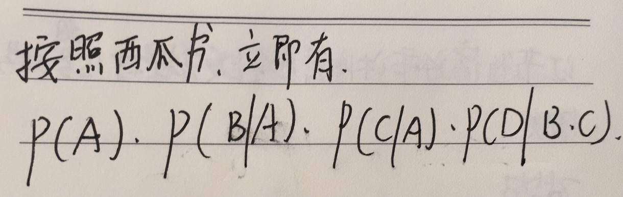 P ( B , C ∣ A ) = P ( C ∣ A ) P ( B ∣ A ) P(B,C|A)=P(C|A)P(B|A) P(B,C∣A)=P(C∣A)P(B∣A)