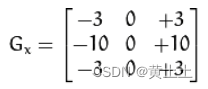 当内核大小为 3时, 用以上的Sobel内核可能产生比较明显的误差(毕竟,Sobel算子只是求取了导数的近似值)。 为解决这一问题,OpenCV提供了 Scharr 函数,但该函数仅作用于大小为3的内核。该函数的运算与Sobel函数一样快,但结果却更加精确,其内核为: