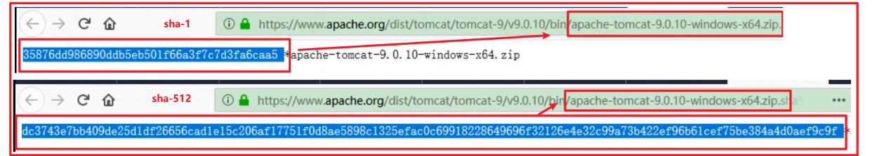- SHA512 百度搜索 tomcat ,进入官网下载 ,会经常发现有 sha1,sha512 , 这些都是数字摘要
