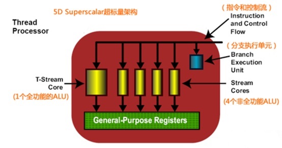 于是,Mali画风一转,把上图的标量乘和加去掉,且放弃VLIW,从而把指令跳转单元抽出来。最后形成了一个新的处理单元,如下图: