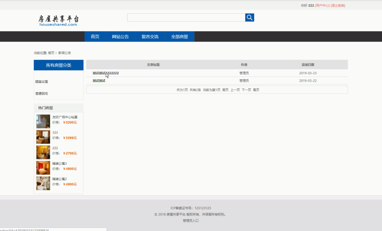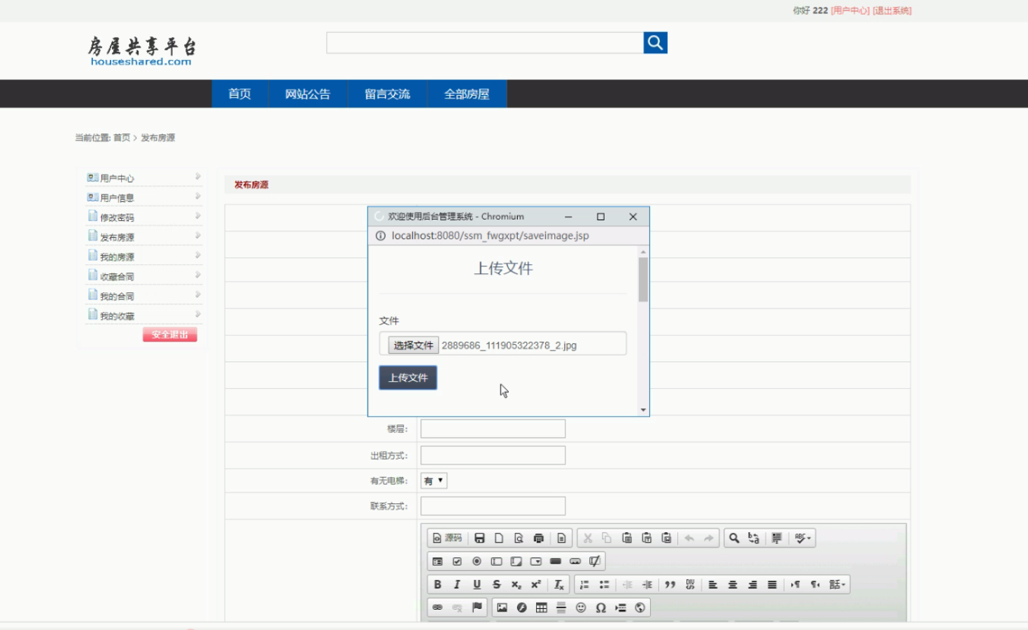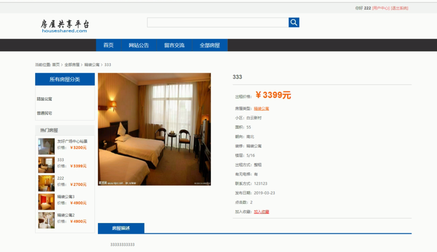 房屋共享平台(SSM+MYSQL+JSP+HTML5)(毕业论文16000字以上,程序代码,MySql数据库,数据库脚本)