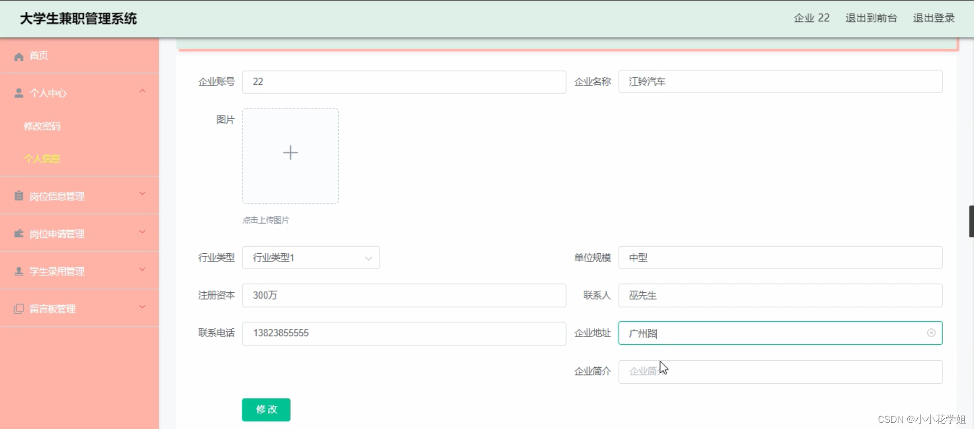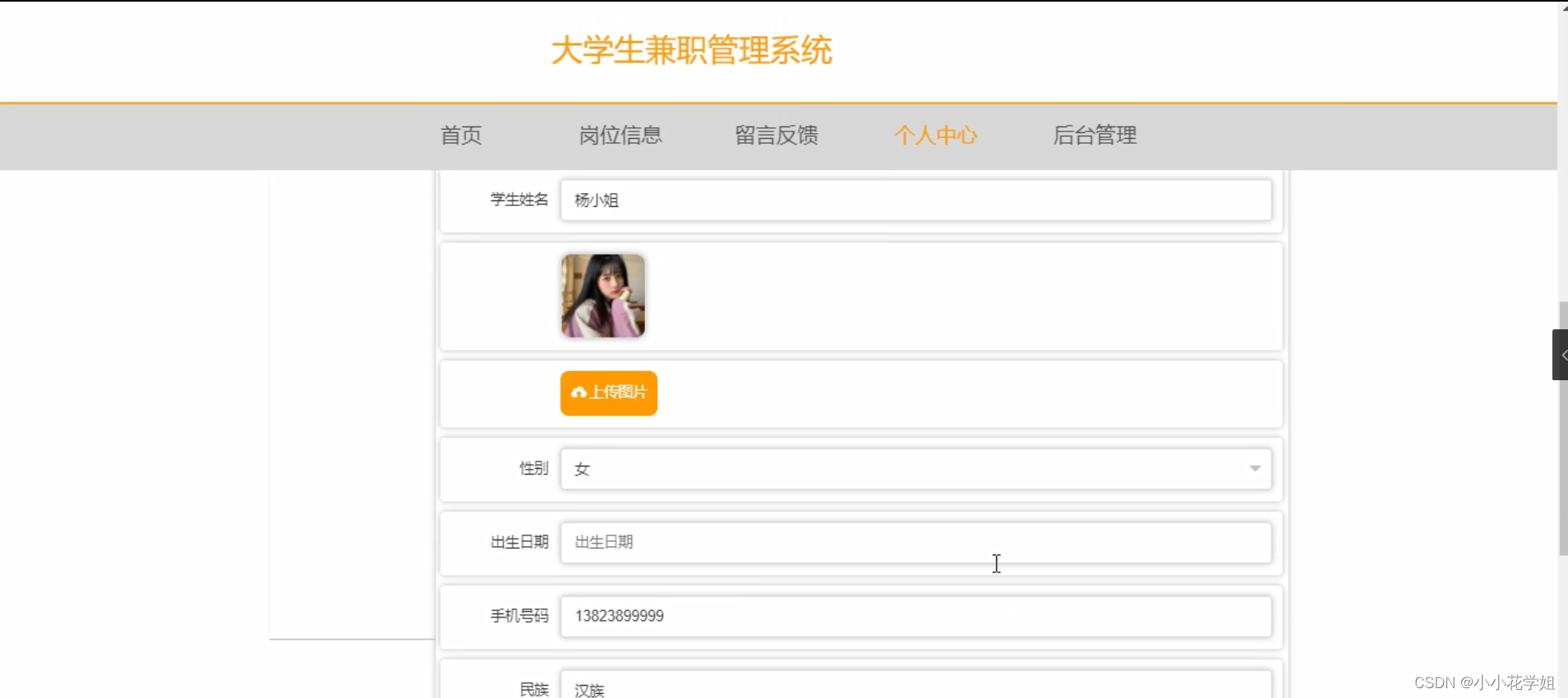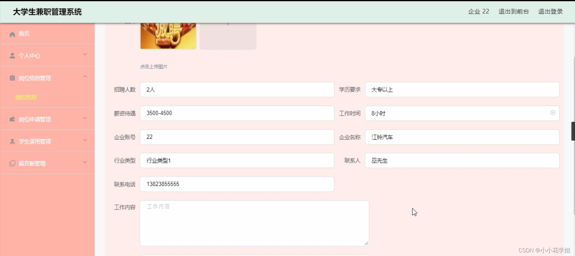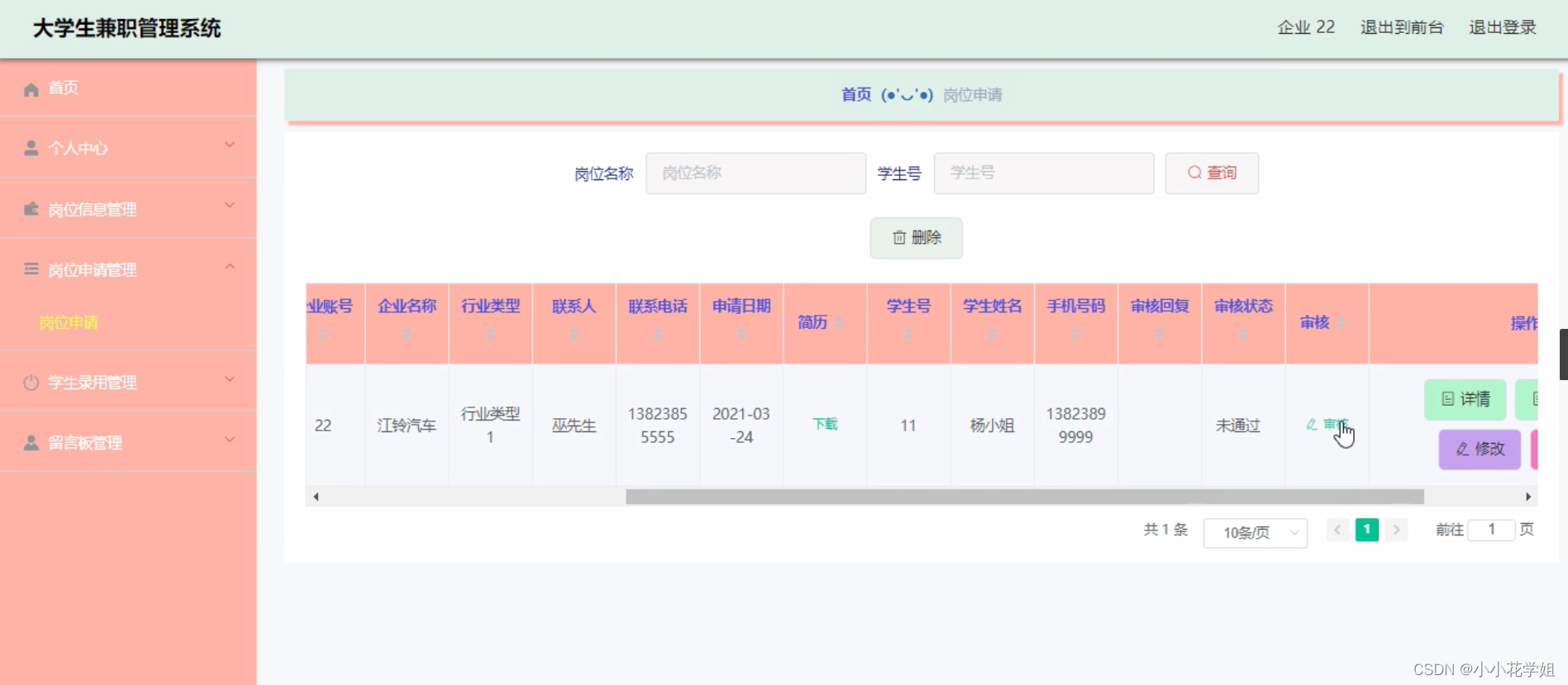 Java毕设项目大学生兼职管理系统(java+VUE+Mybatis+Maven+Mysql)