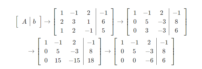 同理,对 [ A | b] 进行初等行变换(即消元):
