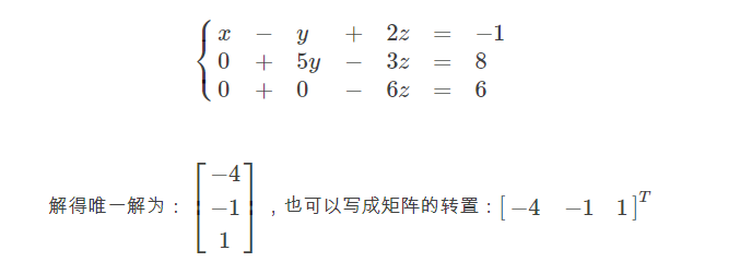 看到消元后的新矩阵是不是觉得很直观,如果你你把新矩阵还原成方程组的形式,有: