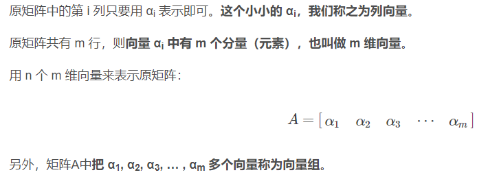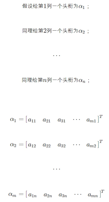 有列向量,自然有行向量。同理,我们对矩阵A按行分块,并对每行元素用向量表示。