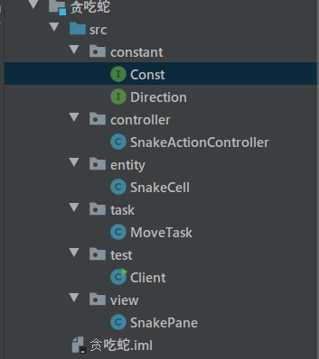 思路:主要分为控制器、视图、任务线程三部分。控制器就是控制蛇的,视图就是用来展示蛇的,然后任务线程就是用来一直维持蛇的运动。