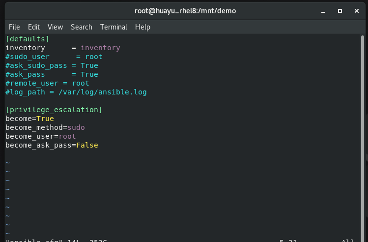 - [privilege_escalation] #配置ansible如何在受管主机上执行特权升级