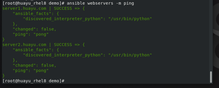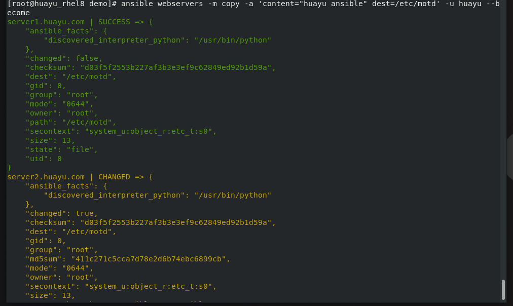 可以看到server1显示SUCCESS,server2显示CHANGED,因为server1已经处于正确状态