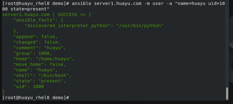 使用user模块确保huayu用户存在于server1.huayu.com 且 uid=1000