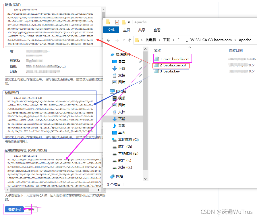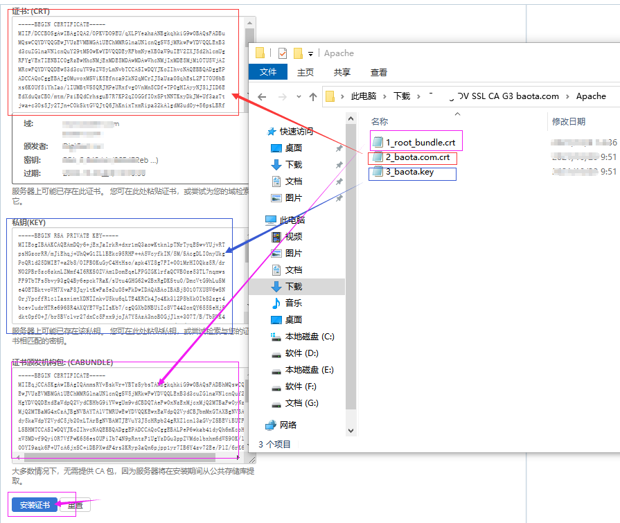 右击文件,选择:打开方式——记事本,将代码全部复制到对应的框内,选择:安装证书。