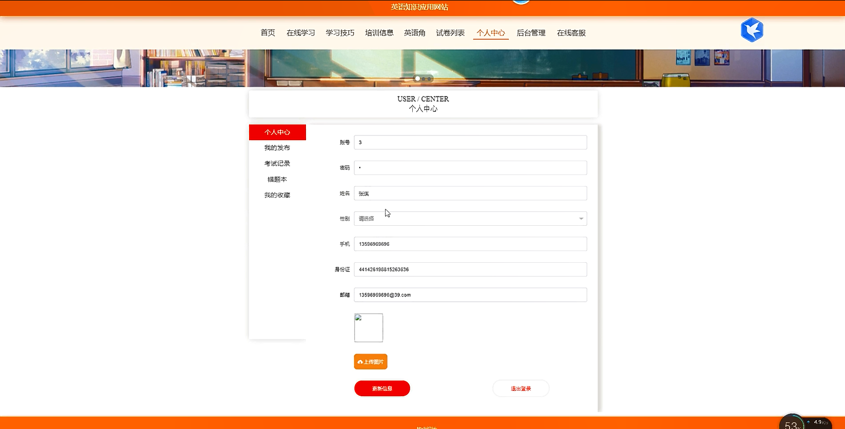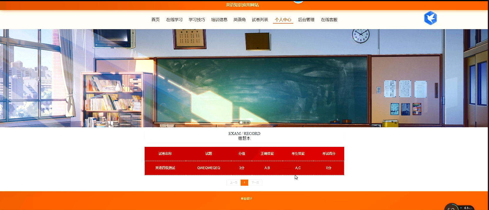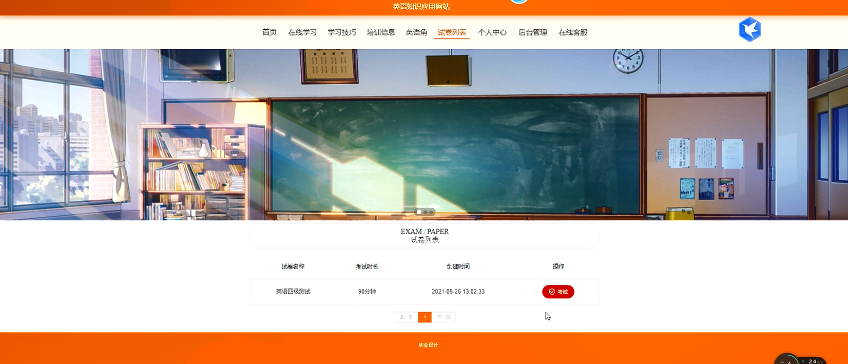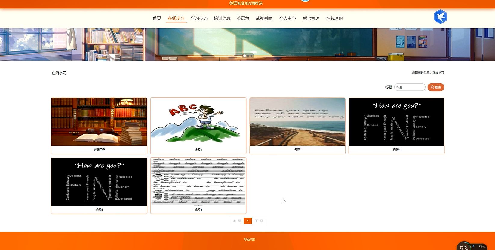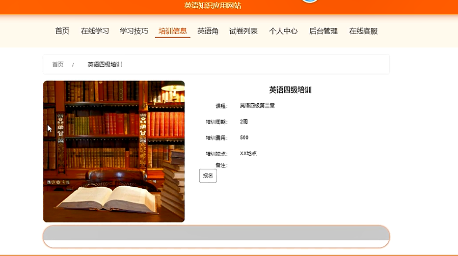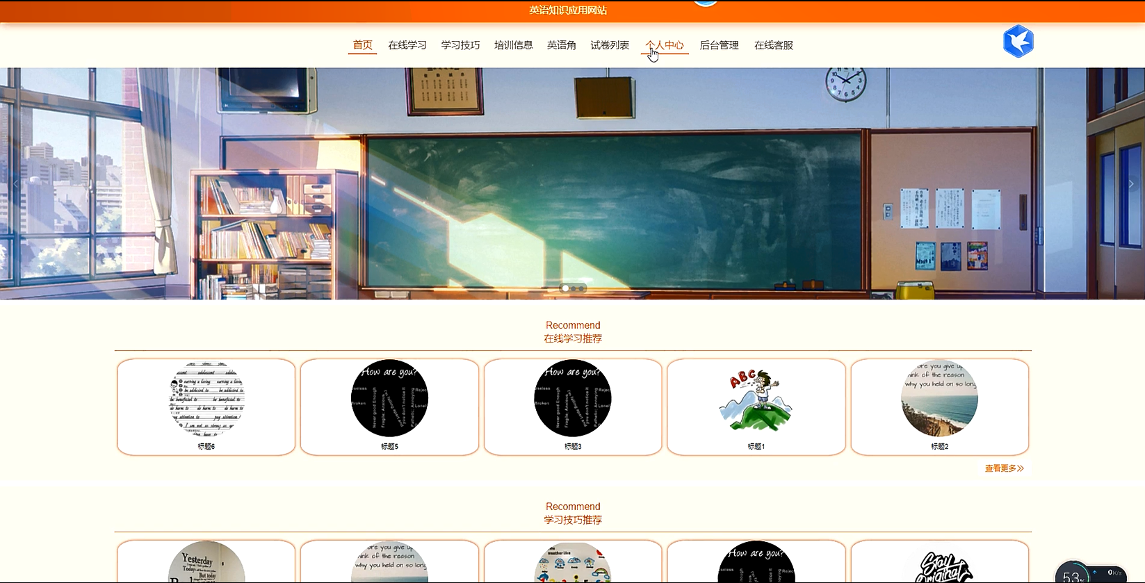 用户端功能有:在线学习、学习技巧、培训信息、英语角、在线考试、在线客服等功能