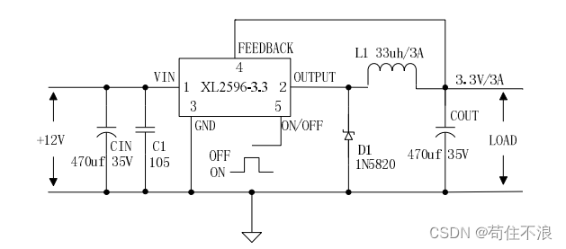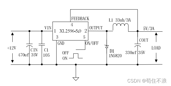 XL2596是DCDC降压芯片,运用在电源电路中,输出电压可选3.3V、5V、12V、ADJ(可调),最大可输出电流为3A。