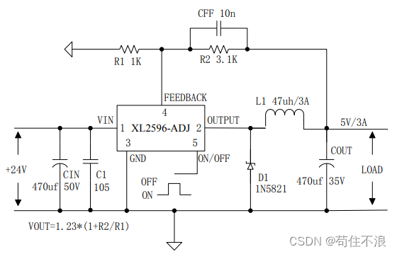C1和CFF是可选的;为了提高稳定性和降低输入电源线噪声,CIN和C1必须放置在Pin1和Pin3附近;