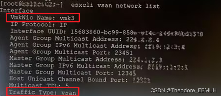 6. 通过以下 CLI 命令验证节点上用于 vSAN 流量的 VMK: