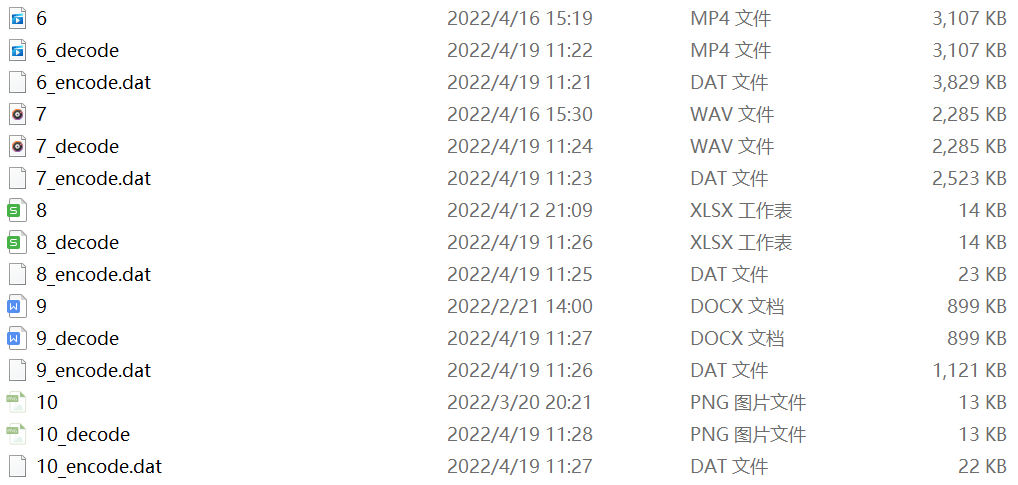 由以上数据观察到不同文件的压缩率差别非常的大,并且有很多文件在利用词典编码之后反而比原文件大了,这体现出了LZW编码的弊端,即当文件中重复字符较少时,需要构建的词典较大,反而会使压缩后的文件变大,从而达不到压缩的目的,故LZW编码要谨慎使用。