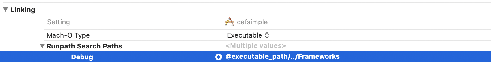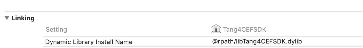 2-3,需要指定下@rpath的具体路径是什么,如果是xcode配置(设置install_path)如下(以libcef.dylib为例):