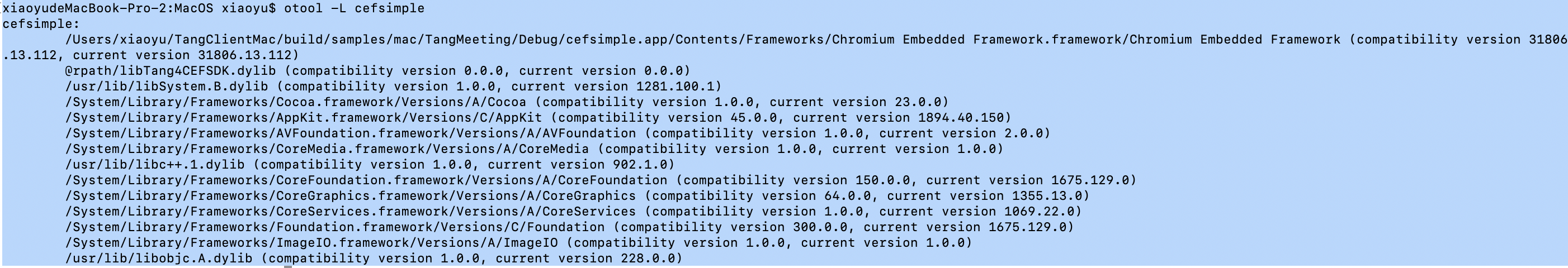 如上依赖的libTang4CEFSDK.dylib就是没有问题的。