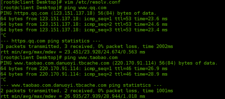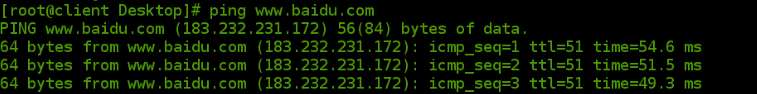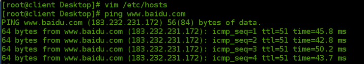 在上一篇博客,介绍了虚拟机如何PING通百度IP(183.232.231.172),但是我们可以发现真机不但可以通过IP地址PING通百度, 也可以通过域名网址(www.baidu.com)来PING通百度的,而我们的虚拟机却只能通过IP地址来PING通百度,这是因为我们没有编辑本地解析文件和DNS指向文件。