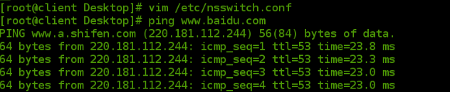 1)没修改前可以发现, files在dns之前,代表本地解析文件优先于DNS指向文件