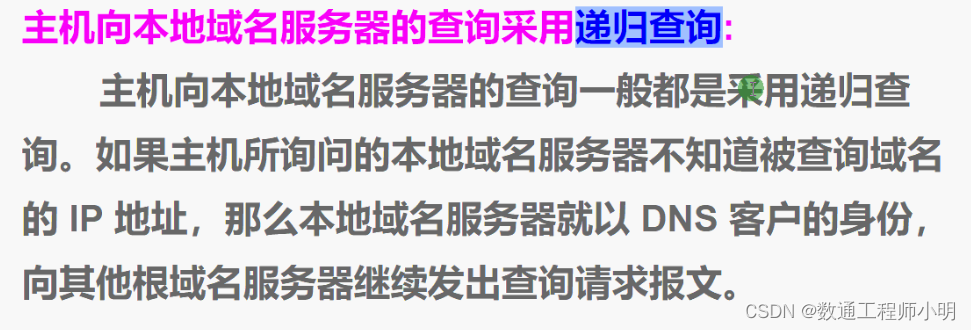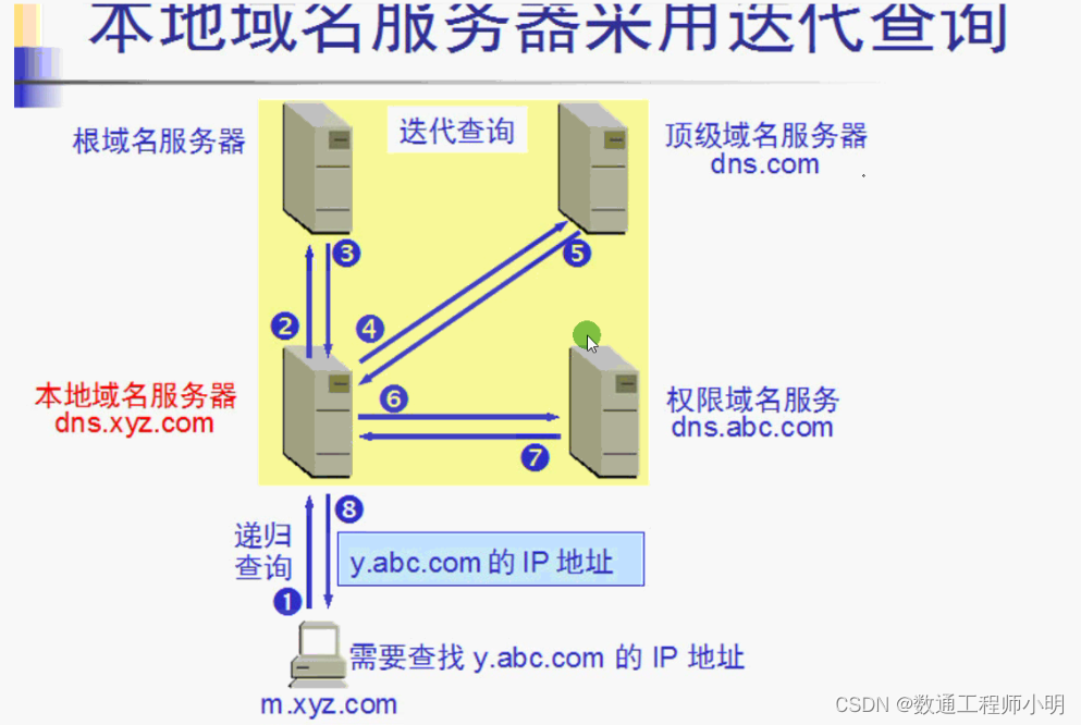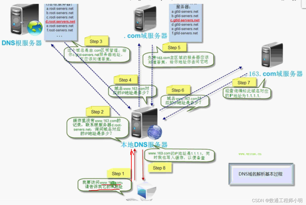 (baidu.com)给本地DNS服务器。当本地DNS服务器收到这个地址后,就会找baidu.com域服务器,重复上面的动作,进行查询,直至找到www.baidu.com主机。