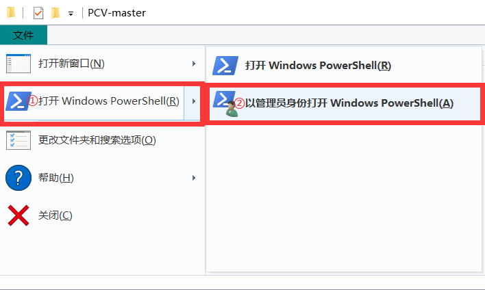 解压进入PCV-master文件,按照如下步骤以管理员权限进入powershell: